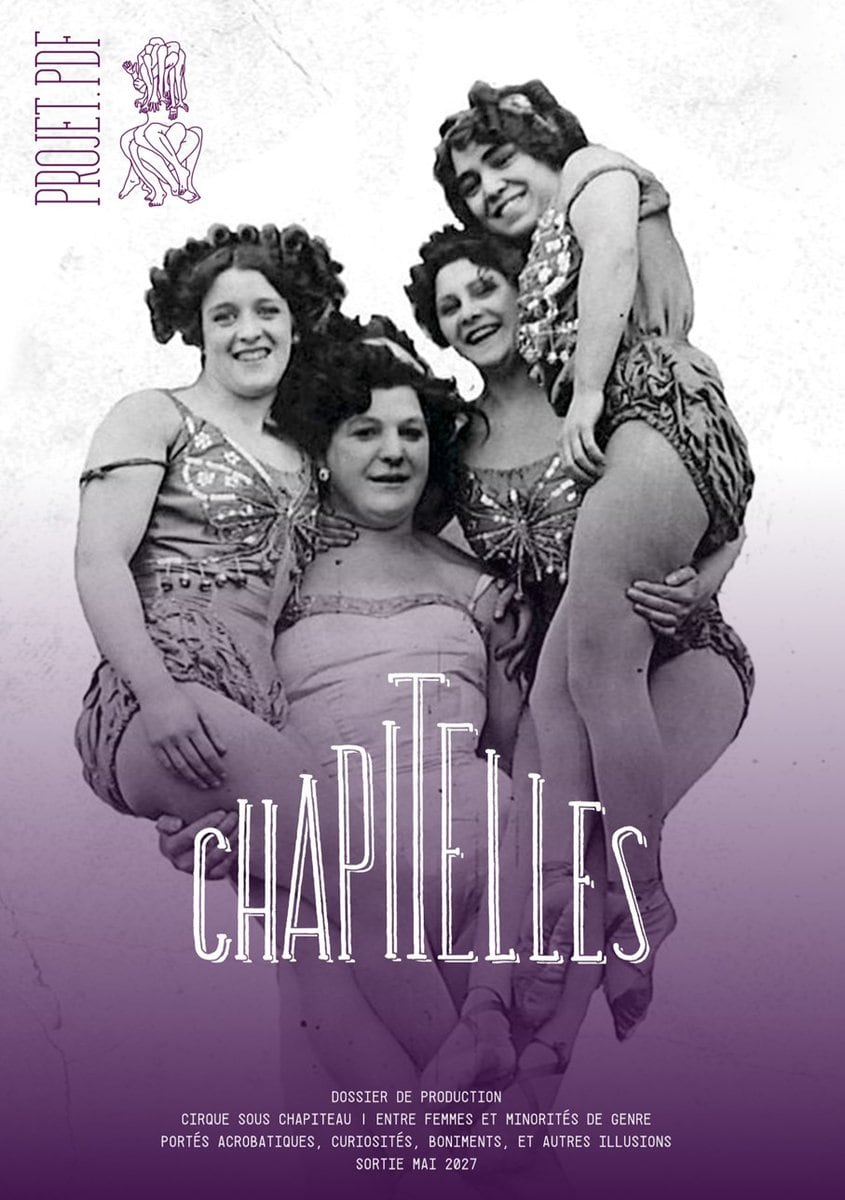 Chapitelles est une création de cirque contemporain du collectif Projet.PDF, en mixité choisie (entre femmes et minorités de genre). À travers le langage du porté acrobatique, le spectacle propose une relecture critique et poétique des freak shows nord-américains du début du 20e siècle, interrogeant regard, pouvoir et illusion. Il mêle immersion, esthétique foraine et engagement féministe dans une démarche collective et incarnée.